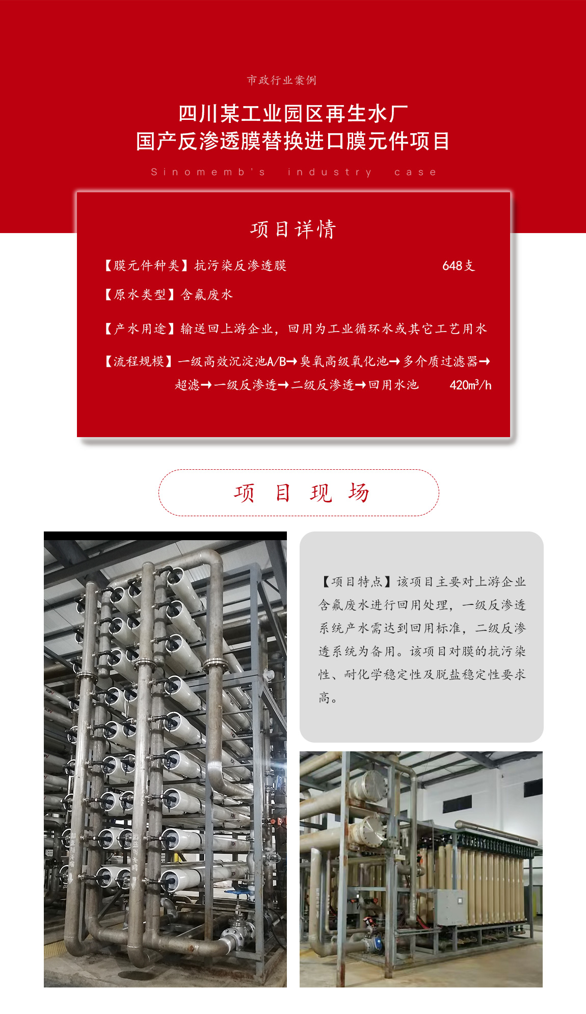 四川某工业园区再生水厂 国产反渗透膜替换进口膜元件项目
